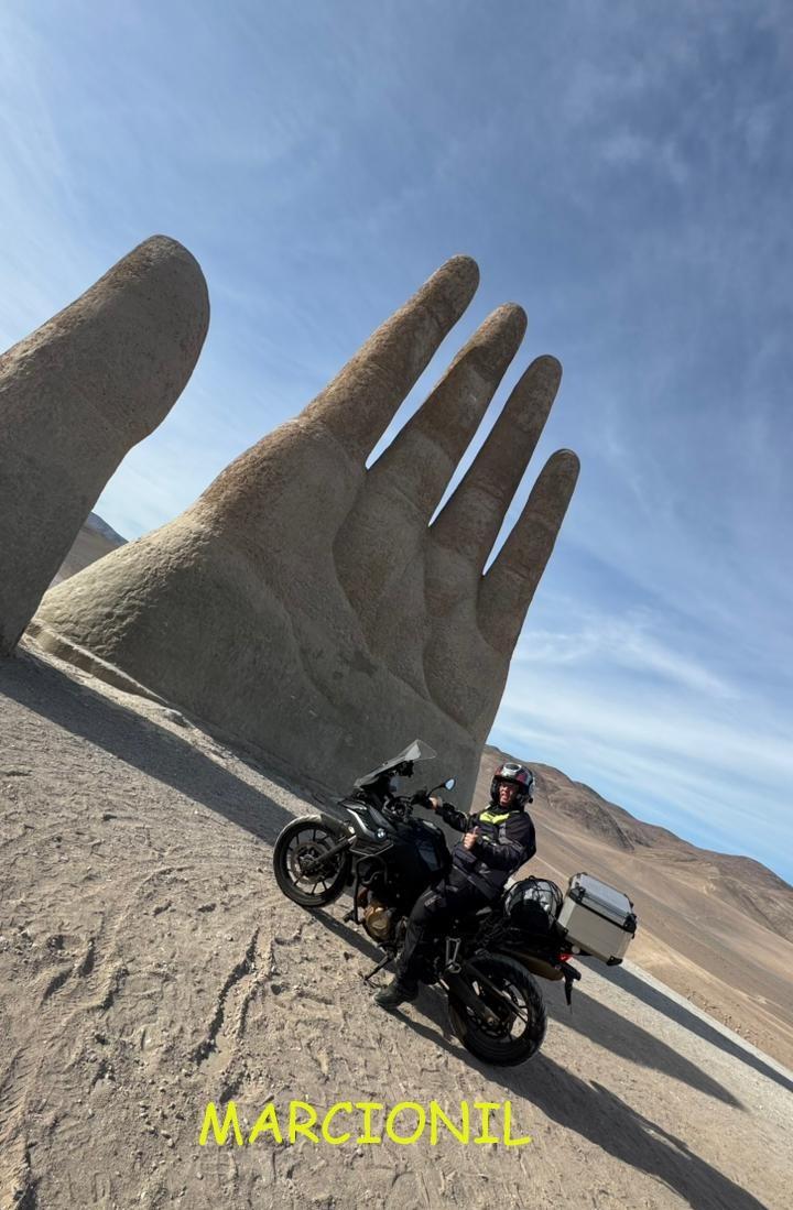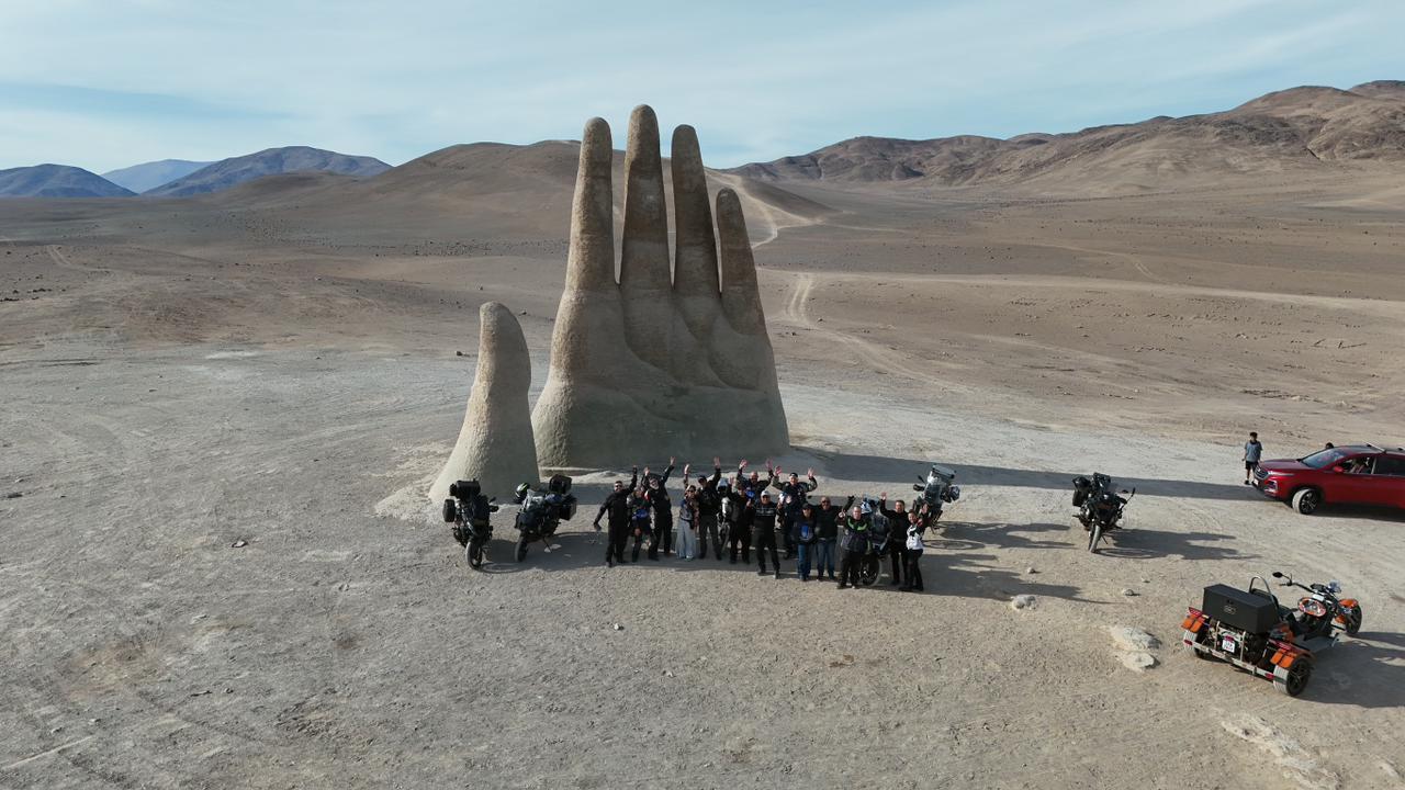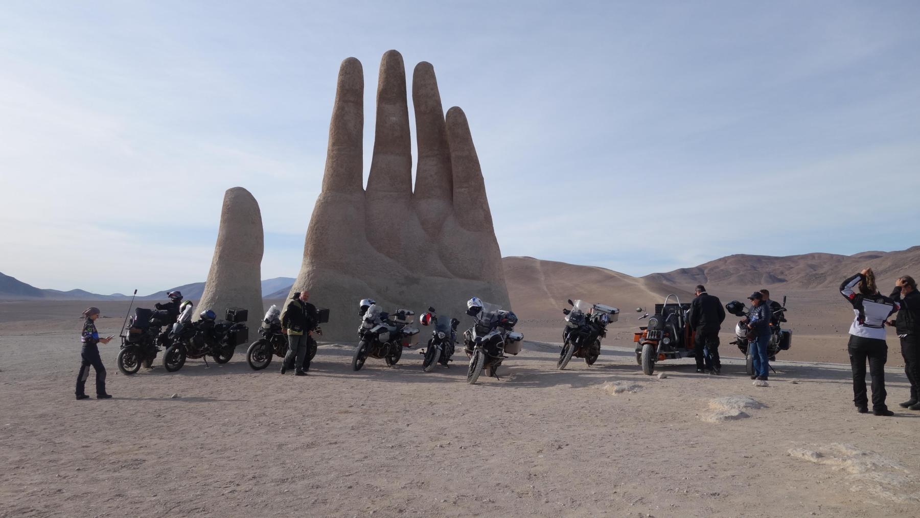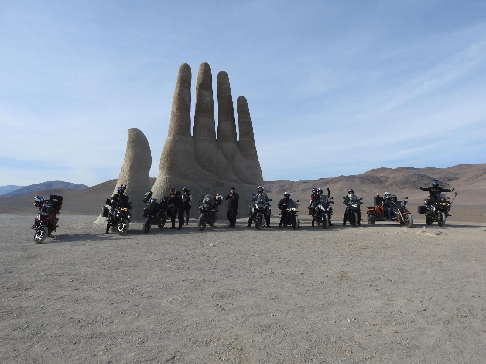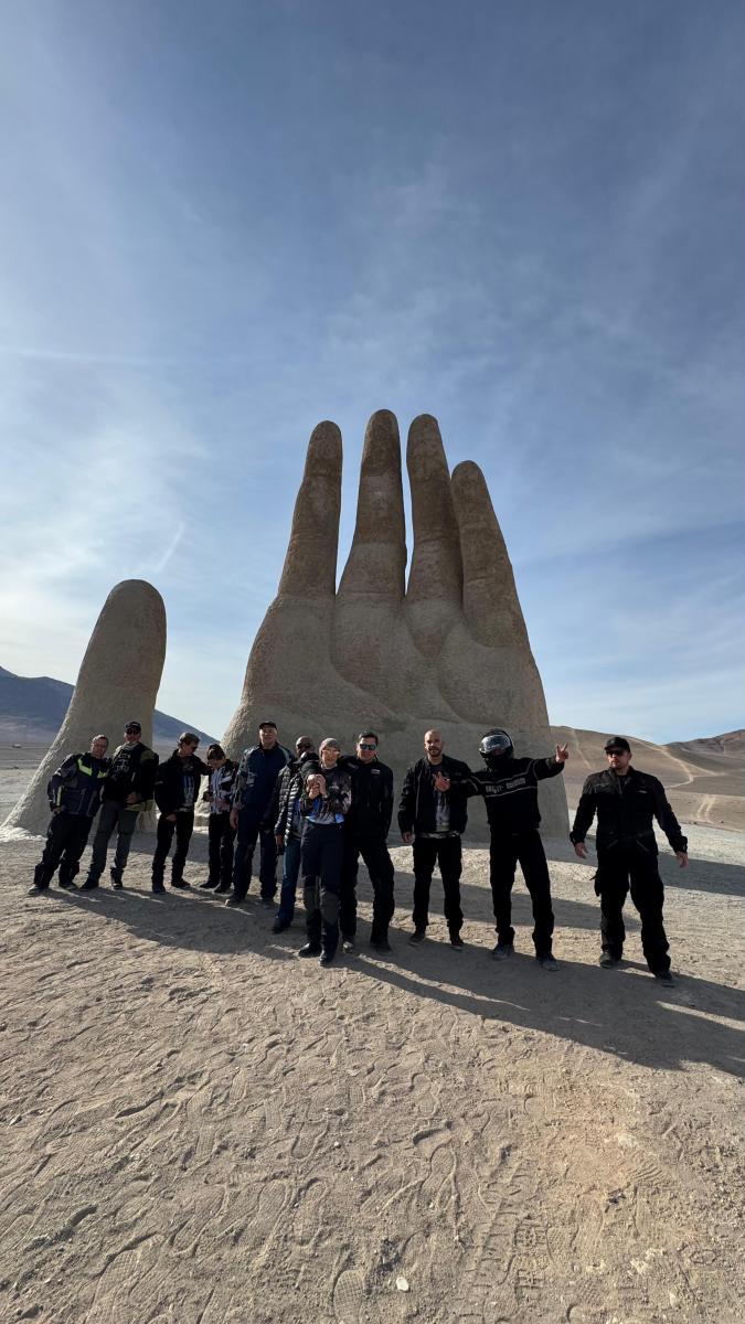 Quando chegamos a Mano del Desierto o sol já tinha dado o ar de sua graça e foi muita festa do grupo tirando fotografias de vários ângulos e poses, fazendo vídeos para registrar essa passagem motociclística.