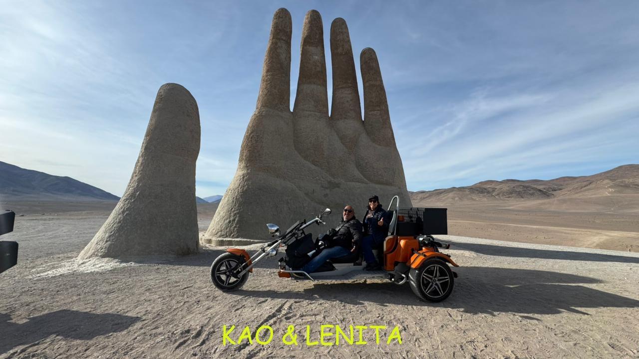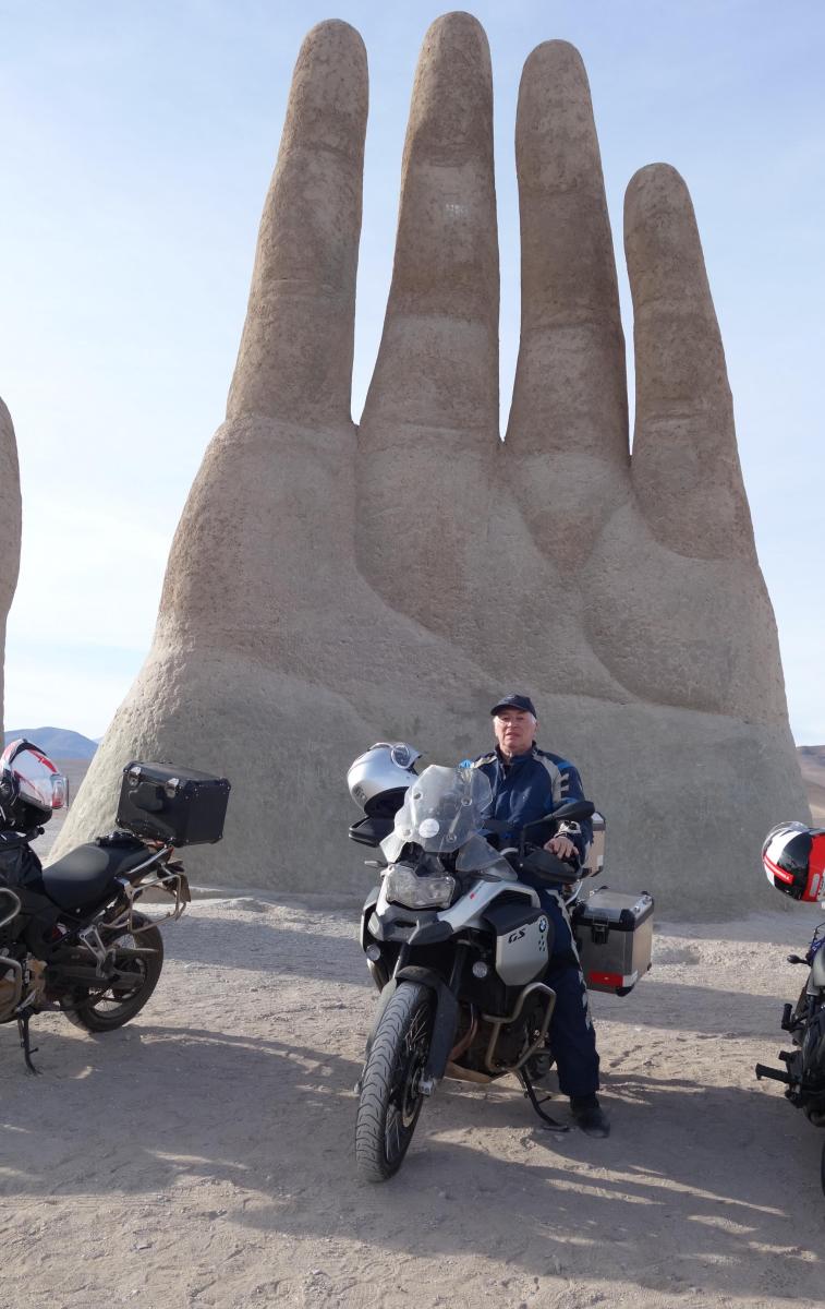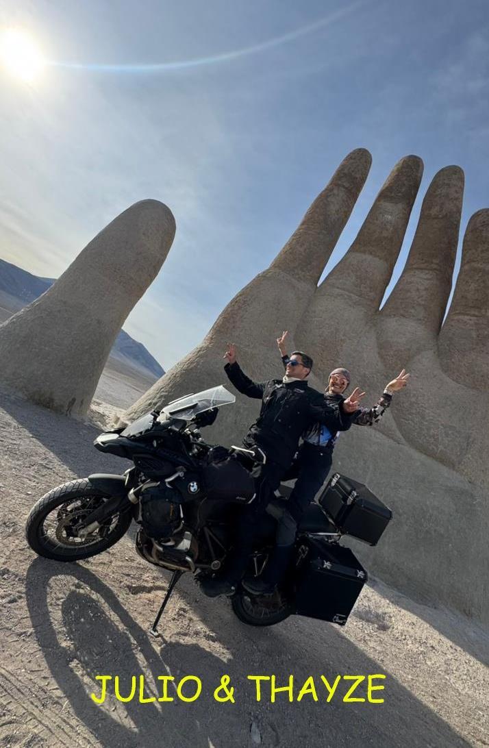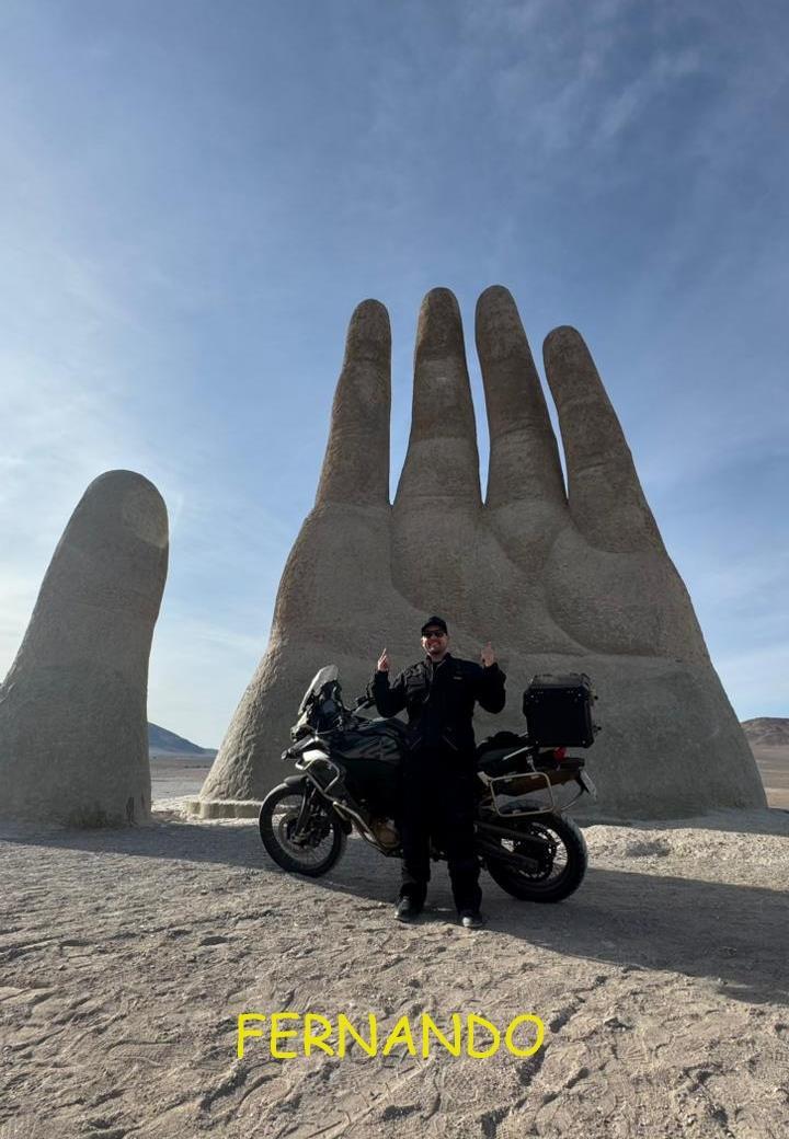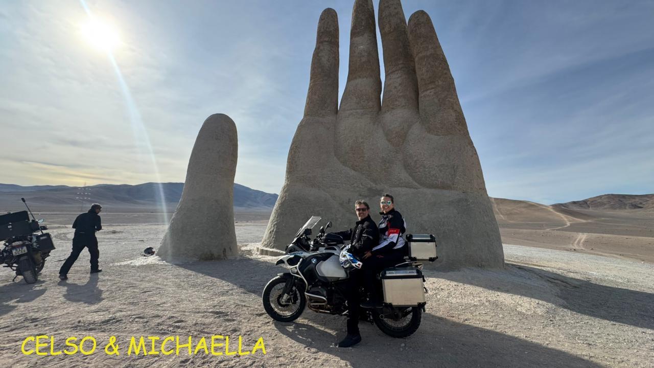 Quando chegamos a Mano del Desierto o sol já tinha dado o ar de sua graça e foi muita festa do grupo tirando fotografias de vários ângulos e poses, fazendo vídeos para registrar essa passagem motociclística.