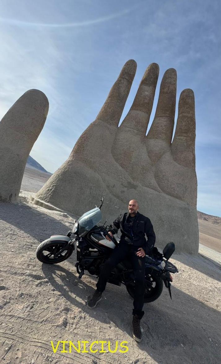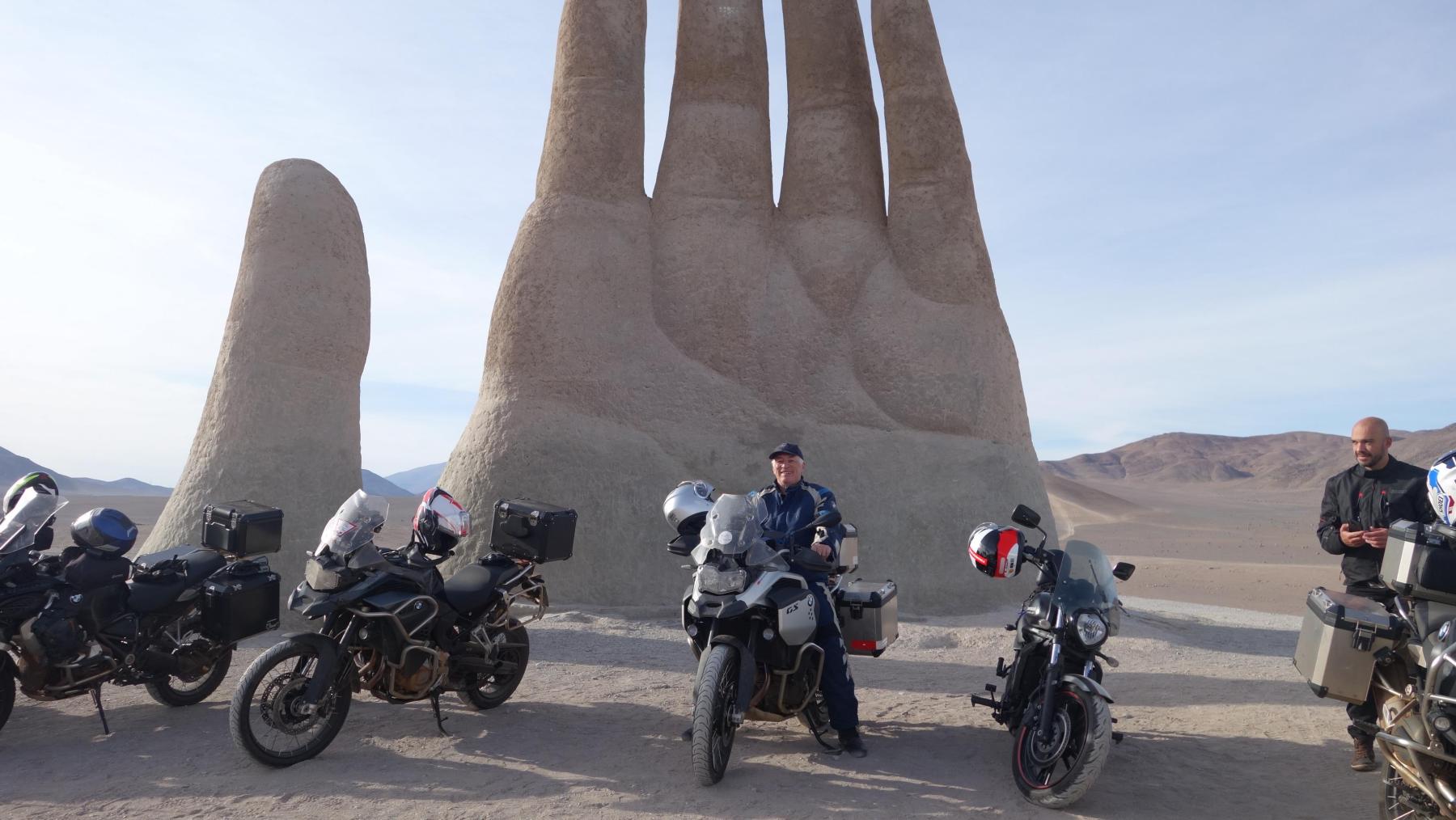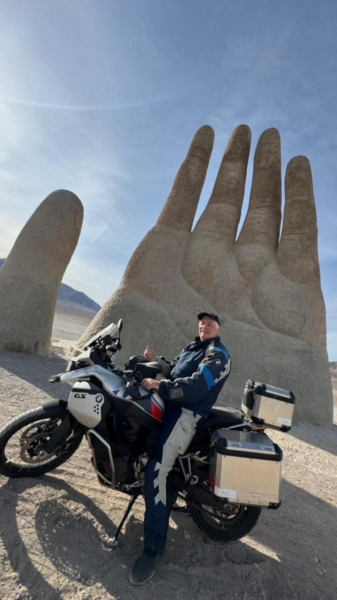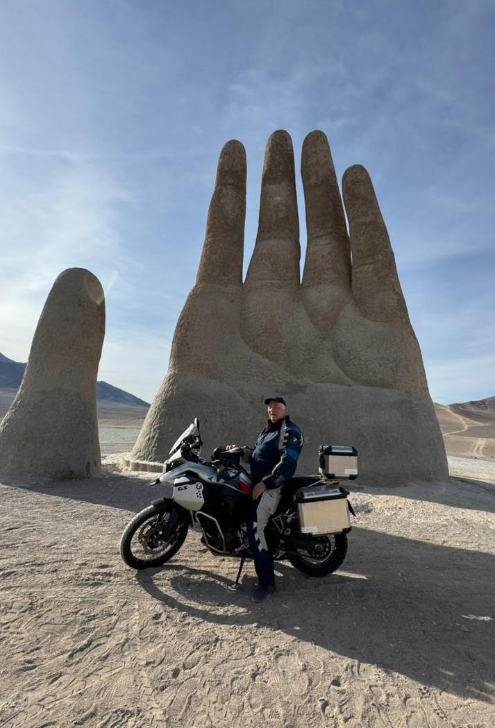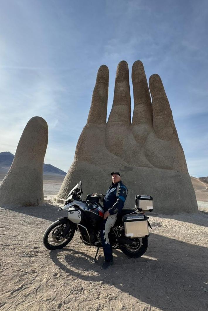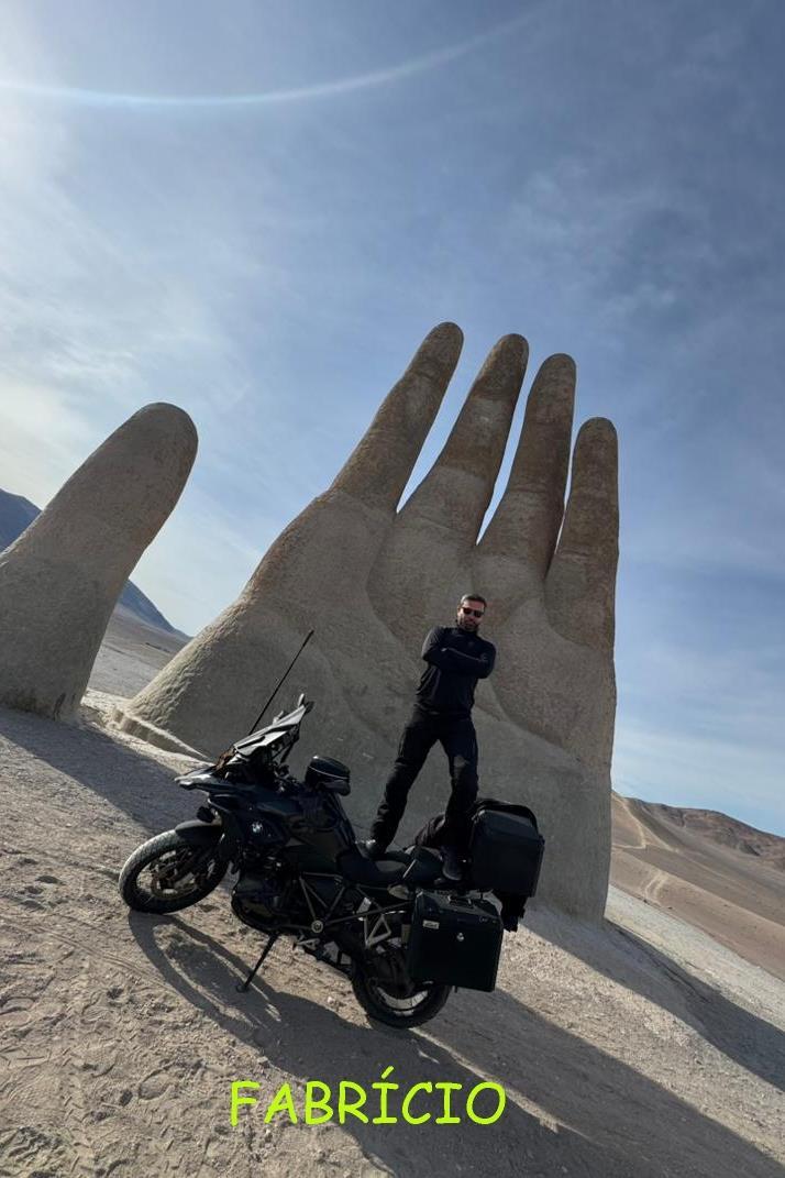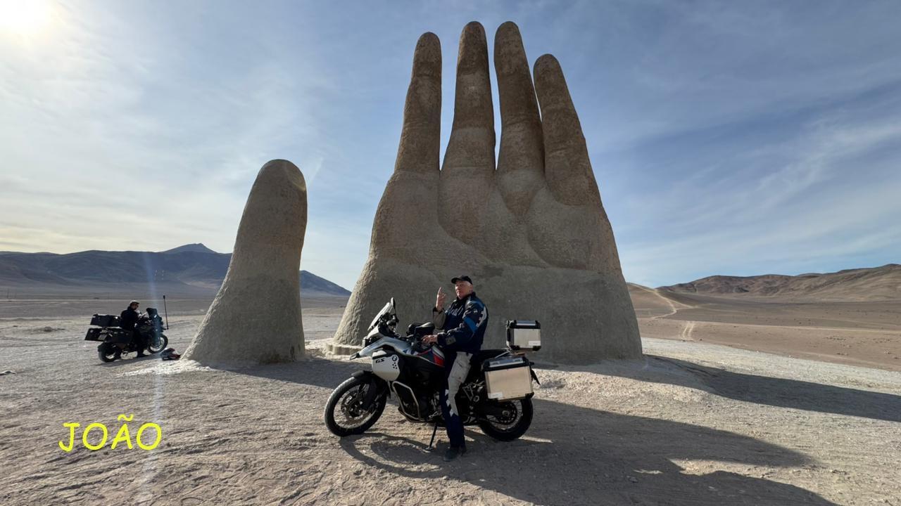 Para quem viaja de moto, tirar uma foto na mão do deserto é considerado um verdadeiro troféu e um momento de imensa satisfação após dias de estrada.